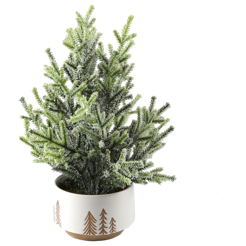 Christmas is here! Adorn your home or workspace with this adorable 11.5" Frosted Xmas tree in 4" Reversed Bowl Pot. Made of Ceramic and painted white and Gold, this 7 "x 7 "x 11.5" Christmas Tree will add a bit of Holiday Cheer to your living space. Christ