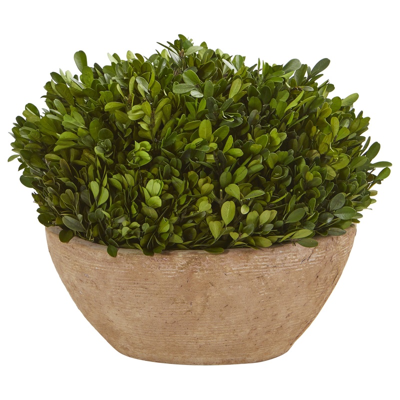 Enhance even the smallest of spaces with this preserved plant showcasing an overgrowth of perfectly manicured realistic boxwood greenery in bright, vivid hues. Sprouting 12in. high from an oval planter, this preserved plant can easily create a refreshing focal point wherever displayed.