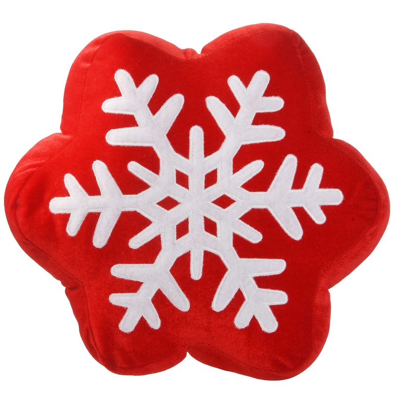 This bright red pillow echoes the shape of the contrasting large white snowflake at its center. The design is embroidered on the pillow front side with solid red fabric on the back side. Polyester blend cover and polyester fill. Add a touch of whimsy to your holiday decorating scheme with this colorful cushion.
