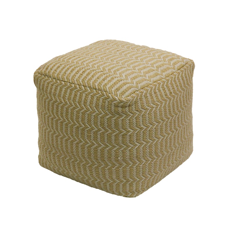 Convenient, comfortable, and stylish, this pouf ottoman is a multipurpose furniture piece offering uses as a portable seat, footrest, or tabletop. Soft yet solid, it is constructed with a polystyrene bean fill and features a strong hand-woven sustainable polyester cover designed to endure outdoor environments. Dress up an interior or exterior space with this versatile pouf featuring a repeating pattern in sand color, an accent piece that offers both form and function.