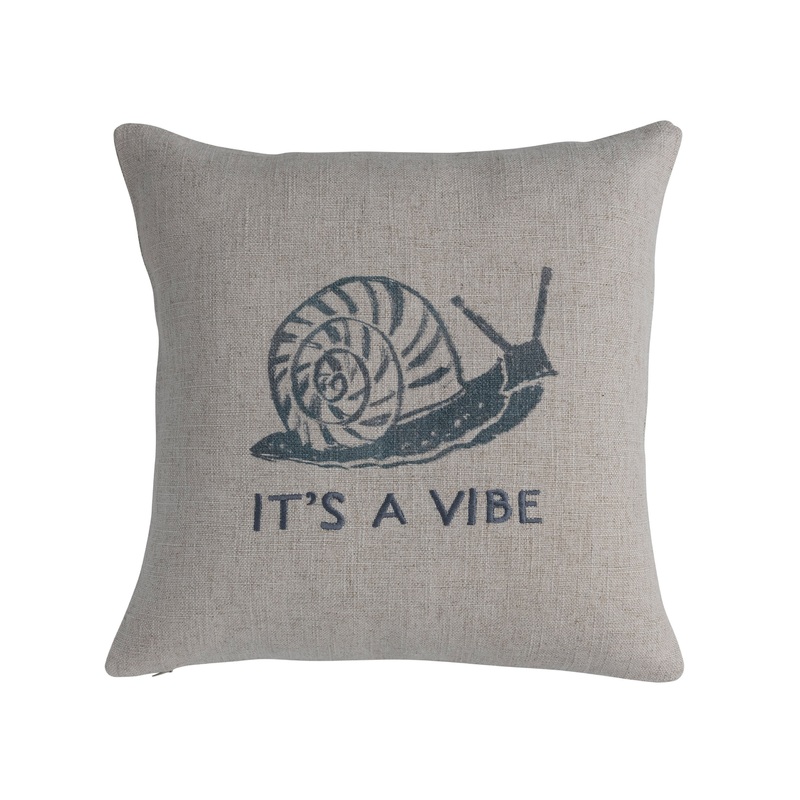 -Add a whimsical touch to every home decor with the 16-inch Square Linen Blend Printed Pillow featuring an adorable snail and the playful text “Its a Vibe” that adds dimension and charm to the design