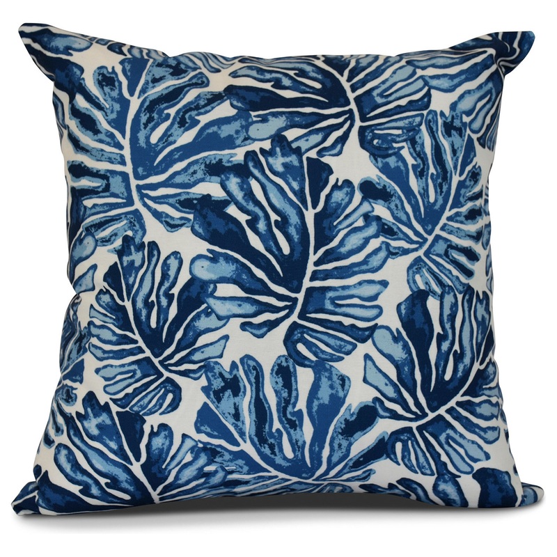 16×16″, Palm Leaves, Floral Print Pillow, Blue, 18″x18″ – Tropical – Decorative Pillows – by E by Design