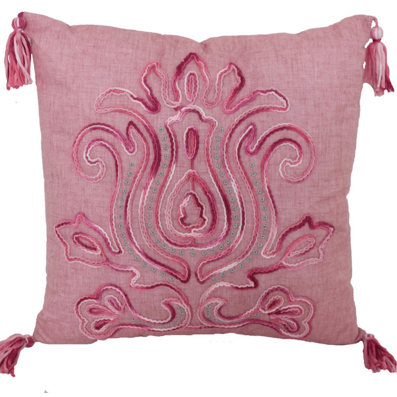 Unique and decorative, this comfortable 17" x 17" light pink polyester zippered pillow with tassels will leave a lasting impression. This light pink colored decorative pillow is made from high grade polyester that is durable and long lasting. Charming deco