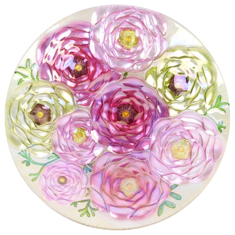 18″ Holographic Painted Floral Glass Plate Bird Bath Bowl Decorative Yard Art – Contemporary – Decorative Plates – by Continental Art Center Inc