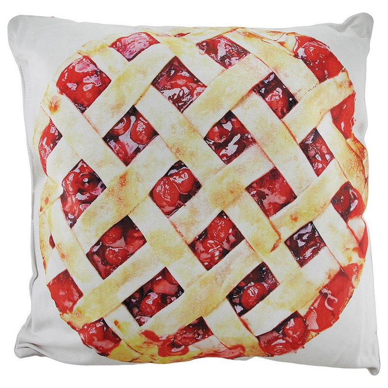 -A Great Accent in Any RoomThis delicious 18-inch by 18-inch (46×46 cm) white throw pillow offers you a close-up view of a bunch of cherries on one side and a cherry pie on the other to rest your head, or arm or to cushion you while sitting on the floor! The 100% cotton cover is recommended to spot clean only with a damp cloth then air dry, and it’s 100% polyester fiber filled. It’s a fine accent in bedrooms, living rooms, and sheltered patios, and perfect for tossing on the bed, couch, chair, or floor, and is great as a gift any cherry lover is sure to enjoy!