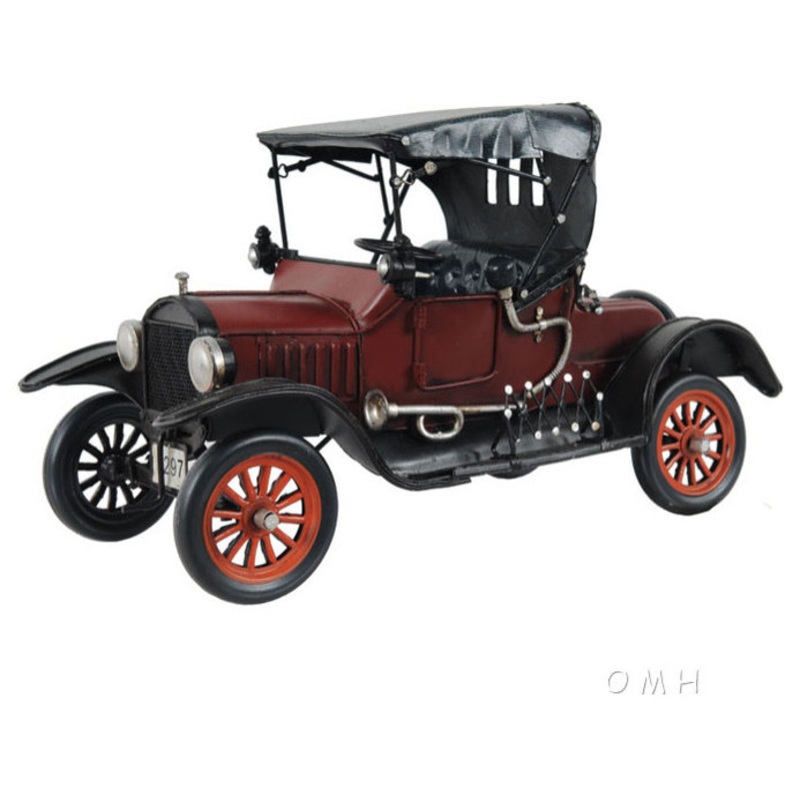 The Ford Model T also was known as Tin Lizzie is an automobile that was produced by Henry Ford’s Ford Motor Company from October 1, 1908, to May 26, 1927. It is generally regarded as the first affordable automobile, the car that opened travel to the common middle-class American. The Ford Model T is not only one of the first production cars but one of the best selling production cars as well. As of April 2018, the Model T sits at the ninth most sold car at 16.5 million units sold. This amazing car is equipped with a 2.9 liter 20 horsepower inline 4 engine. It was a rear-wheel drive with a two-speed manual transmission and its top speed was 45 miles per hour. When the Model T was first in production (1908) it cost $825 which is about $22,000 in todays money. The price of this car ranged from $260 – $900 from 1908 – 1927, which is about $3,600 – $23,600 with current inflation. The model of the Model T would be great for decoration. The difference between this model and our other model is that this one is red. This model has all the features like the other one has, like rolling wheels and an iron frame. The red color on the car gives that great antique and different feeling. The wheels are orange to give the car a good color break. The car is 11 and a half inches long, 6 inches wide, and 7 inches high, 1:12 scale. This is definitely a special classic to have.