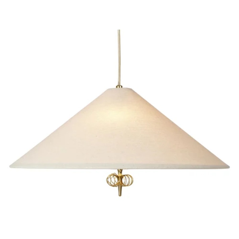 1967 Suspension Lamp1967 is an iconic suspension lamp designed by renowned designer Paavo Tynell and produced by the famous brand Gubi. 1967 is a lamp that features a shade made of canvas, a fabric cord, and brass details.In the 1967 lamp, in both styles,
