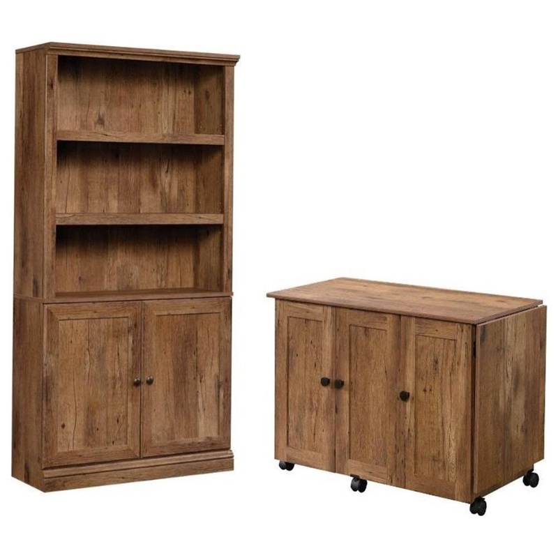 Included Items: -Contemporary Wood Sewing Craft Cart in Vintage Oak x 1 -3-Shelf 2-Door Tall Wood Bookcase in Vintage Oak x 1 -For quicker processing, your order could be split into separate packages. -3-Shelf 2-Door Tall Wood Bookcase in Vintage OakGive y
