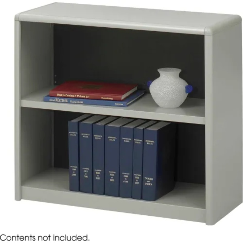 Economical, sturdy, and strong with the ValueMate Bookcases you can’t go wrong The shelf and exterior of the bookcase are constructed of steel and the back is made of solid fiberboard. Attractive, plastic snap-in radius corners make assembly easy and add to the overall strength of these units. Generous 12″ deep shelves accommodate 3-ring binders and large publications. Includes two shelves. Gray finish.