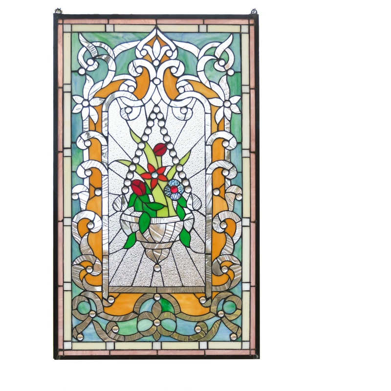 20.25″ x 34.25″ Large Handcrafted glass window panel QA2034120 – Traditional – Stained Glass Panels – by Three Mountain International Inc.