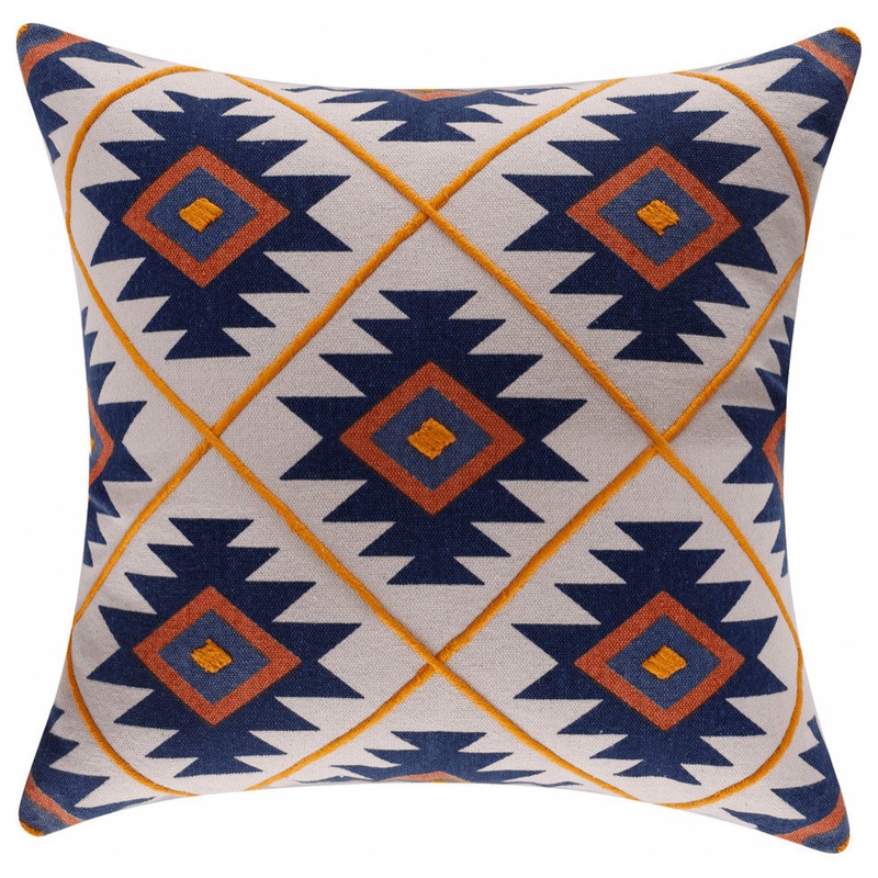 20″ X 20″ Blue 100% Cotton Geometric Zippered Pillow – Southwestern – Decorative Pillows – by HomeRoots