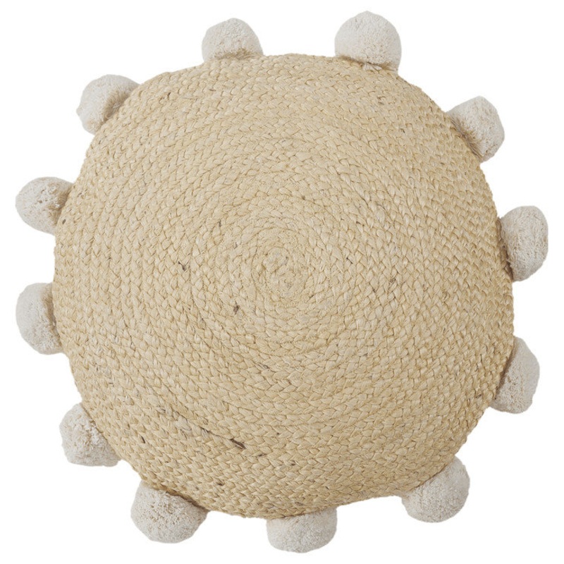 Add an air of fashion to your room and rejuvenate the space with this cute and fashionable 20" x 20" tan round jute zippered pillow. Durable tan jute has been used to give this pillow a beautiful look that will stand the test of time. Great to use on its o
