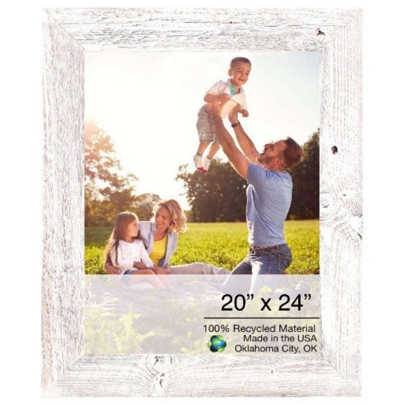 Decorate your room with character and charm using this 20" x 24" Rustic Farmhouse White Wash Wood Frame. This beautifully rustic and distressed picture frame is handmade from real trees with natural knots and blemishes so no two will be exactly alike. Has