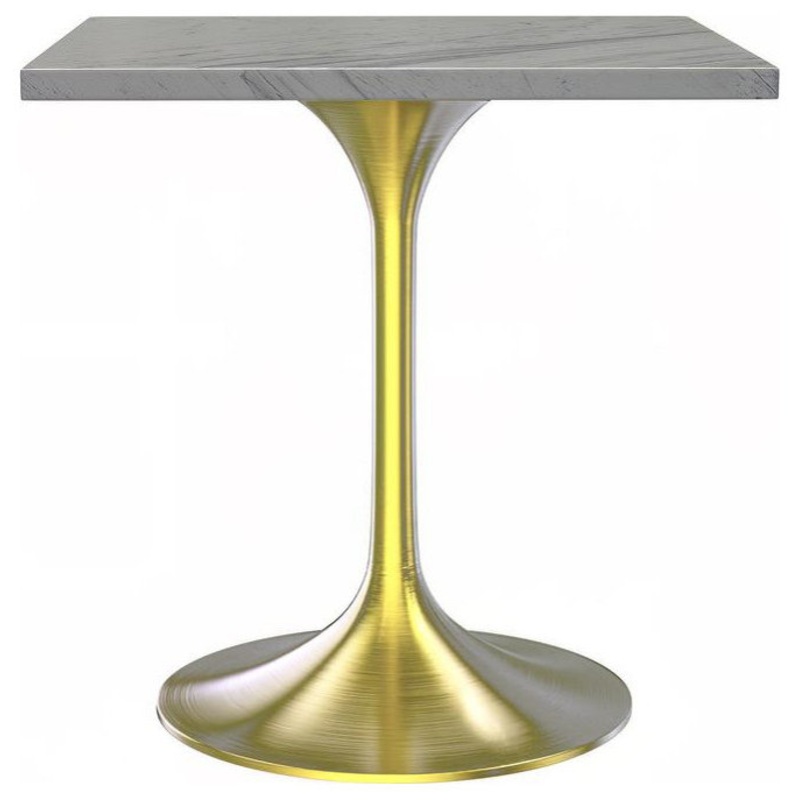 27 Square Dining Table, Brushed Gold Base with Laminated White Marbleized Top, 30″ – Contemporary – Dining Tables – by Bison Commerce