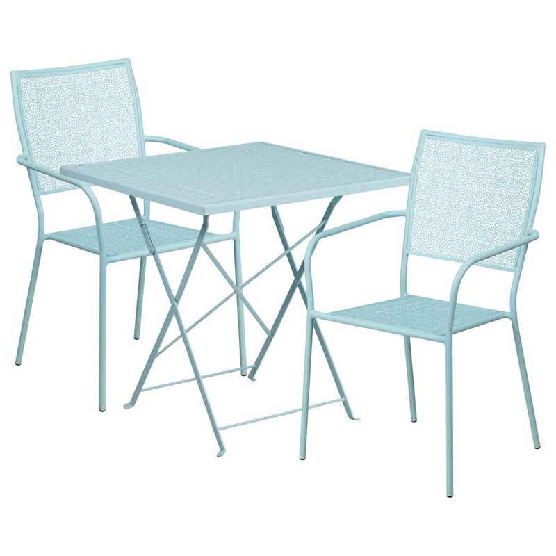28″ Square Sky Blue Indoor/Outdoor Steel Folding Patio Table Set – Contemporary – Dining Tables – by Bison Commerce-CO-28SQF-02CHR2-SKY-GG