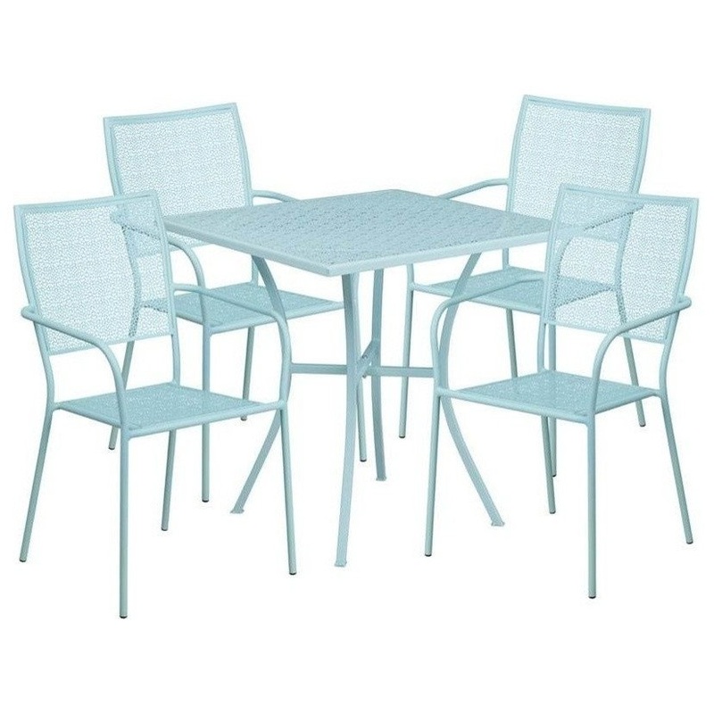 28” Square Sky Blue Indoor-Outdoor Steel Patio Table Set, 28″W x 28″D x 28.25″H – Contemporary – Dining Tables – by Bison Commerce