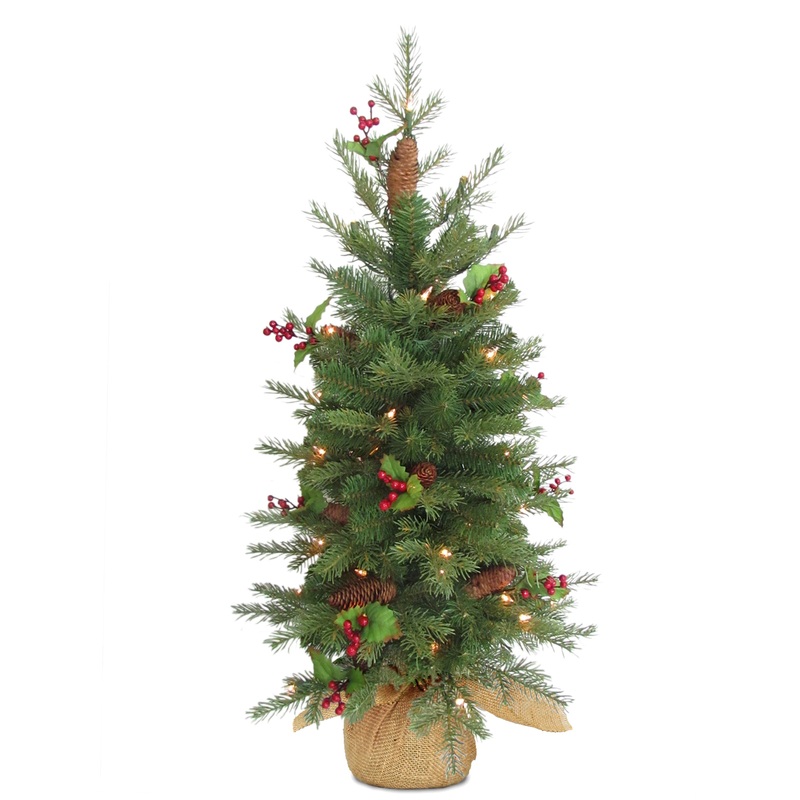 Transform your home into a winter wonderland with National Tree Company's Pre-Lit 'Feel Real' Artificial Mini Christmas Tree. This majestic Nordic Spruce tree is 3 feet tall, 22 inches in diameter at the bottom and decorated with pine cones and berry clust
