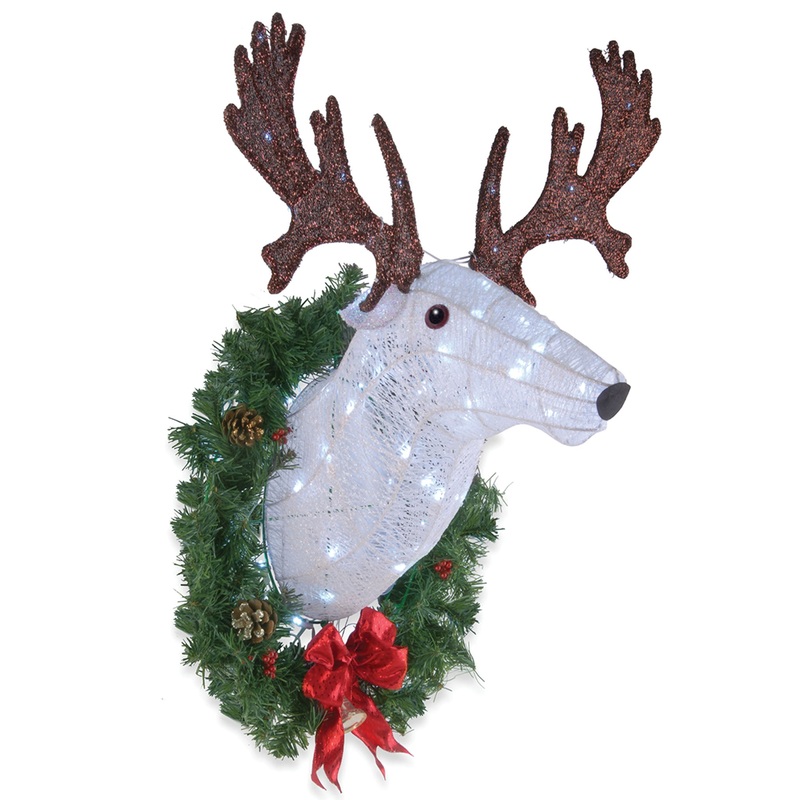 This wall-mounted decoration is made with rigid sisal material wrapped around a wire frame creating a strong and durable holiday trimming. It is pre-lit with 70 cool white long lasting LED lights that make this decoration sparkle and shine. An evergreen wr