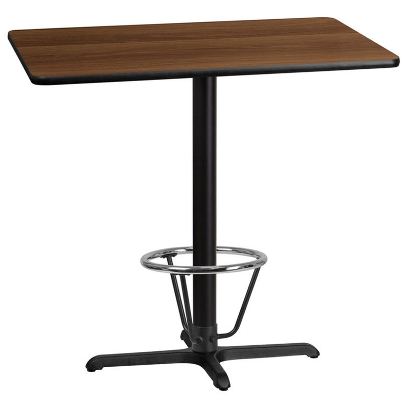 30” x 42” rectangular walnut laminate table top with 22” x 30” bar height table base and foot ring [xu-waltb-3042-t2230b-3cfr-gg] 30″w x 42″d x 43.13″h
