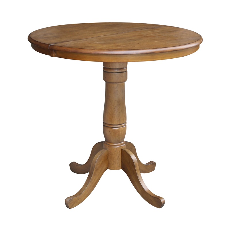 -With leaf, table expands from 36″ to 48″Two tables in one! This item includes one 6″ extension pedestal base that permits the consumer to turn the dining height table into a counter height table.