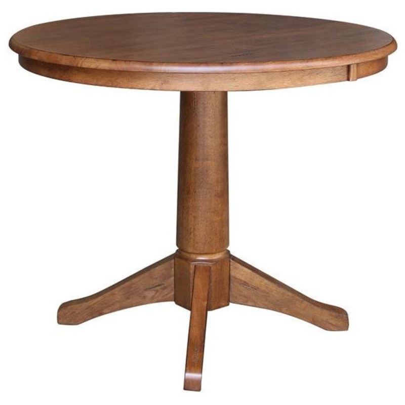 36″ Solid Wood Round Top Pedestal Table in Distressed Oak – 29.9″ Height – Transitional – Dining Tables – by International Concepts