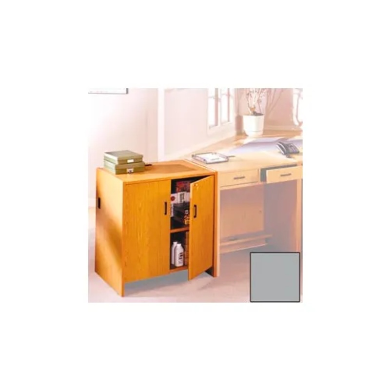Each unit can be used alone as a freestanding component or placed alongside one another to create an expanded workstation. All-wood construction provides the upscale look of professional quality. Thermally fused melamine laminate surfaces are water, scratch, stain and burn resistant for long lasting durability. Solid-core, industrial grade particleboard offers superior strength that resists warping. 2-shelf unit includes a fixed bottom shelf and an adjustable middle shelf. Middle shelf is adjustable at 1-1/4″ increments. Dual locking cabinet doors are key-lockable for security. Doors includes pull handles and European-style hinges. Built-in cable management grommets maintain an attractive appearance. Adjustable leveling feet for uneven surfaces. Easy assembly. 1 Year Limited Warranty.