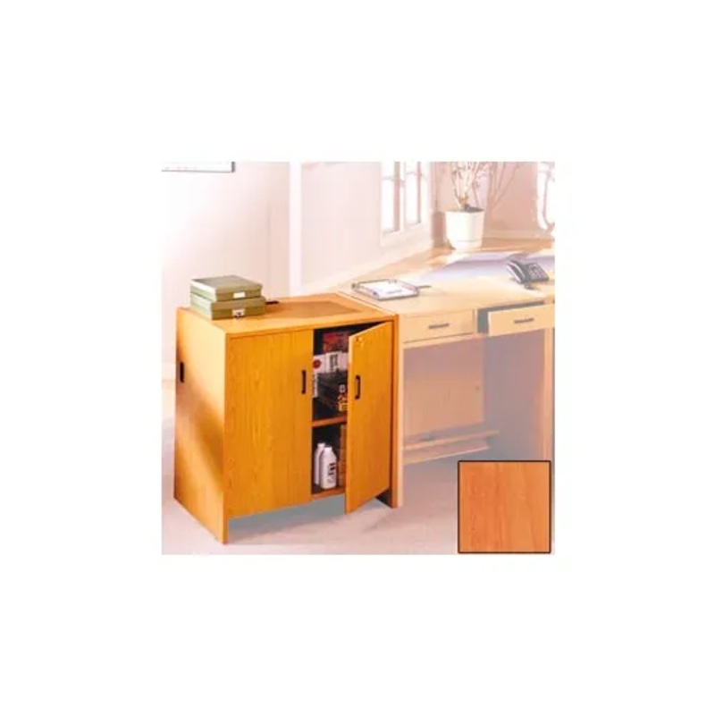 Each unit can be used alone as a freestanding component or placed alongside one another to create an expanded workstation. All-wood construction provides the upscale look of professional quality. Thermally fused melamine laminate surfaces are water, scratch, stain and burn resistant for long lasting durability. Solid-core, industrial grade particleboard offers superior strength that resists warping. 2-shelf unit includes a fixed bottom shelf and an adjustable middle shelf. Middle shelf is adjustable at 1-1/4″ increments. Dual locking cabinet doors are key-lockable for security. Doors includes pull handles and European-style hinges. Built-in cable management grommets maintain an attractive appearance. Adjustable leveling feet for uneven surfaces. Easy assembly. 1 Year Limited Warranty.