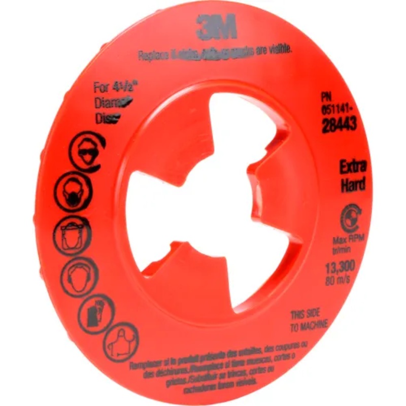 3M Disc Pad Face Plate backs a same size fiber disc (sold separately) to provide firm support and the force required for grinding applications. It is used in conjunction with a disc pad hub (sold separately), which attaches to the power tool, and held into