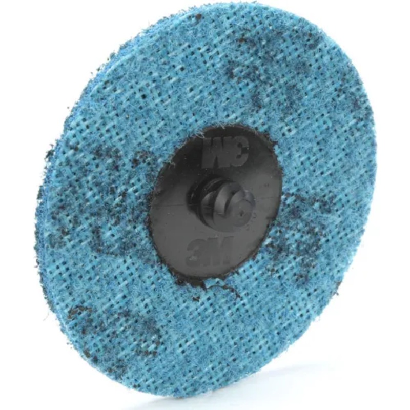 The open-web fiber runs cool and resists loading while the abrasives provide a high cut-rate to give you consistent finishing. The 3M Roloc attachment system offers quick and easy disc change-out, making the Scotch-Brite Roloc Surface Conditioning Disc ideal for a range of tasks including blending, deburring, and finishing. The Scotch-Brite Roloc SC Surface Conditioning Disc is available with a choice of silicon carbide or aluminum oxide abrasive mineral. Silicon carbide is a synthetic mineral that is very sharp and commonly used for low-pressure applications such as paint prep and finishing. Aluminum oxide is a hard, blocky mineral that provides high cut-rate and long life. While silicon carbide breaks down faster than aluminum oxide, it produces a finer finish. 3M Roloc quick change discs are smaller discs that easily and quickly attach onto a Roloc disc pad (sold separately) so that you can conveniently change discs from job to job or in multi-step finishing processes. The 3M Roloc Quick Change Attachment System provides a secure attachment even for heavy-duty applications, and the variety of available Roloc discs allows swapping from one application to the next in seconds. Each disc is also color-coded to identify its grade, making it easy to grab the grade required for different applications. Scotch-Brite surface conditioning products have been developed by 3M with abrasives incorporated into non-woven nylon or synthetic fibers. Combining abrasives with the fibers creates an abrasive system that delivers consistent results for the life of the product. The open-web material runs cool, reducing the risk of part discoloration and warping. The fibers are load resistant and keep the abrasive minerals cutting at high performance by limiting clogging of the fibers, which also extends the life of the disc.