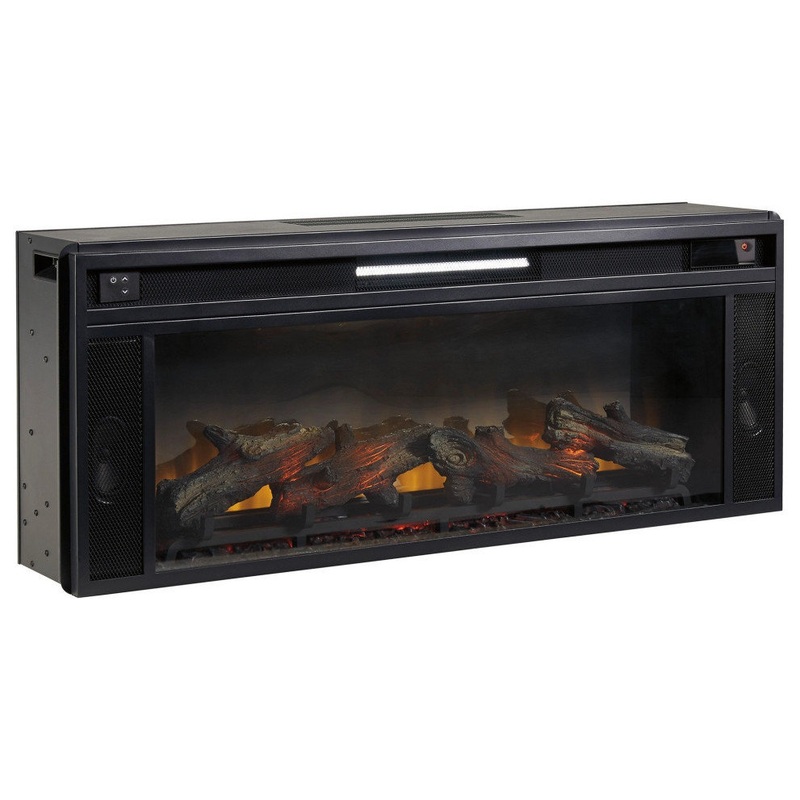 43 Inches Electric Fireplace Insert with Log Set Look, BlackDesigned to keep your interior warm and cozy, this Fireplace Insert comes with realistic log set look and LED lit fire display. Incorporated with five levels of flame brightness settings, the back cover comes with easy clean filter.