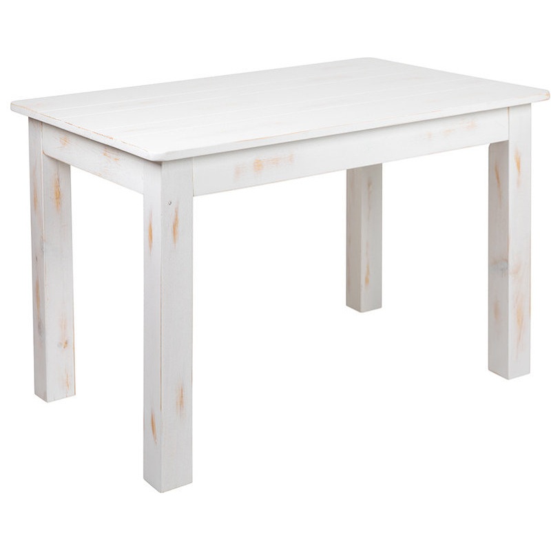 -Farmhouse Dining Table in Antique Rustic White Stain Finish