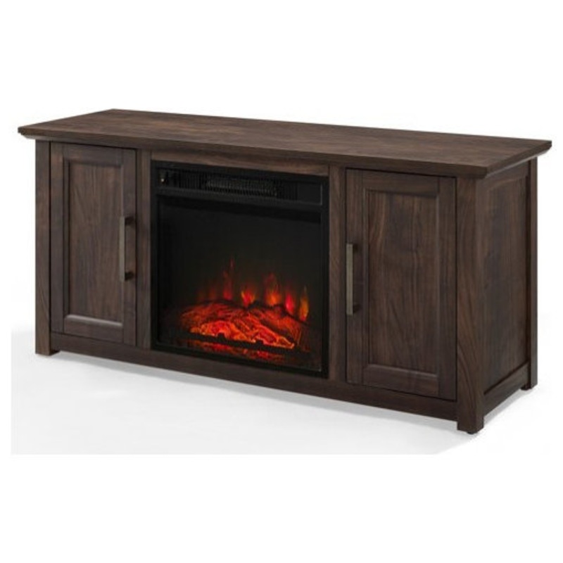 -Primary Color: Dark Walnut -Rustic design -Dark walnut finish -Genuine metal hardware in an antique brass finish -Adjustable levelers on feet -One adjustable and removable shelf in each cabinet -Fits most TV's up to 50" -Fully assembled electric firebox i