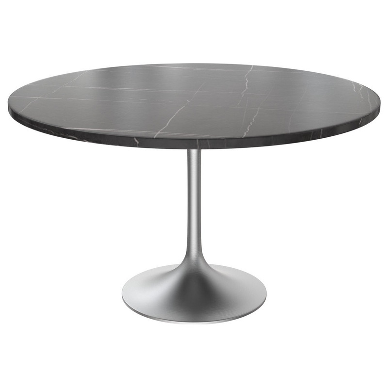 48 Round Dining Table, Brushed Chrome Base with Sintered Stone Black Top – Contemporary – Dining Tables – by Bison Commerce