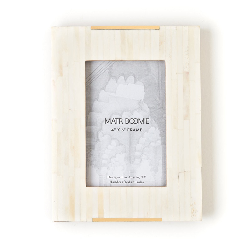 4×6 Picture Frame – Carved Bone, Brass Accent