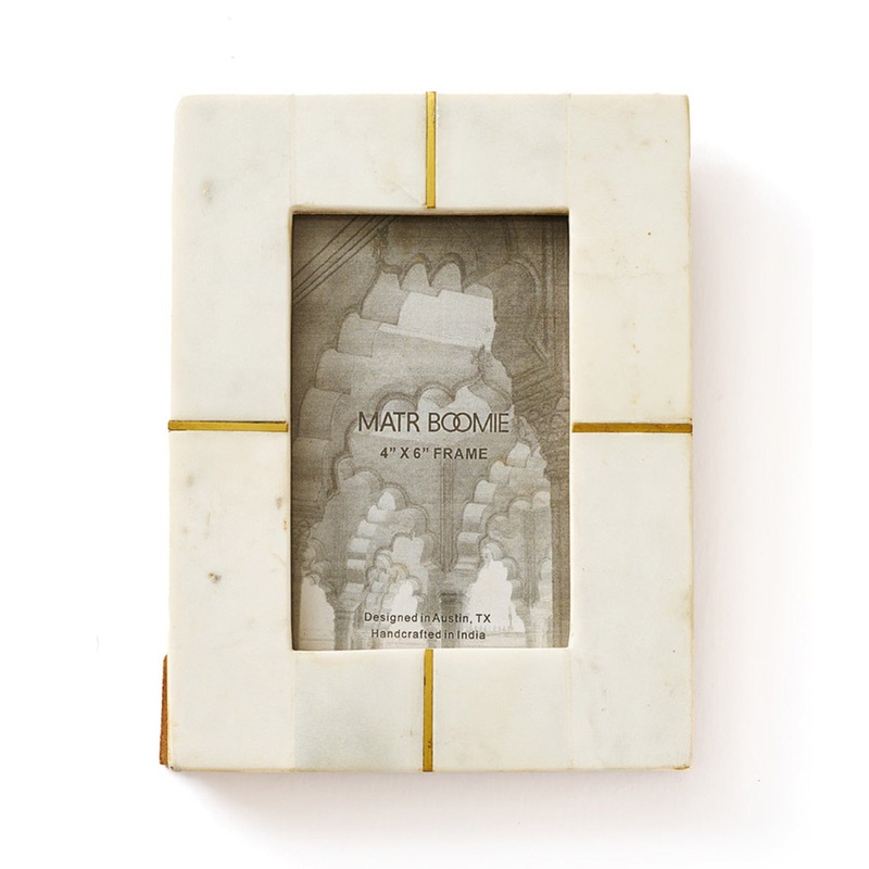 4×6 White Picture Frame – Carved Marble Brass Inlay