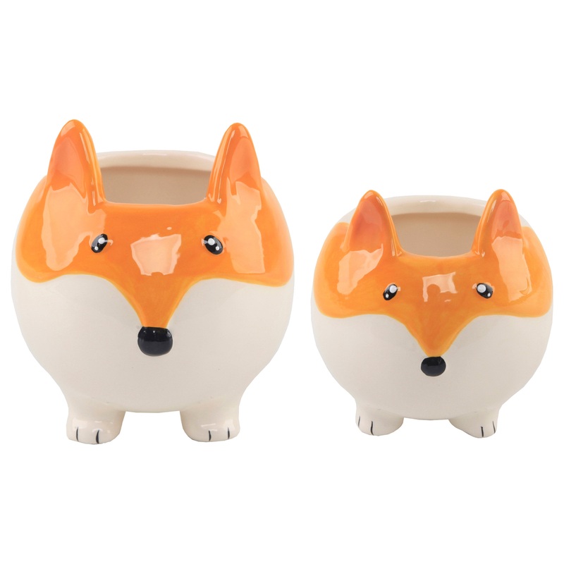 Decorate your home or office in Modern Farmhouse style with our charming Set of Two Ceramic Fox Succulent planters. Hand-crafted by Artisans using superior ceramic material, these Fox planters give a clean and chic feel to any tabletop, entry way, or windo