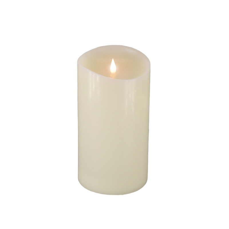 Battery operated with remote controlled functions, this flameless candle produces a realistic, soft, and safe candle glow. The smooth, ivory color exterior surface is crafted with real wax and features an uneven melted top appearance. A handheld remote control operates the lifelike candle flame with functions that include brightness, flicker speed, and timer settings. Uses two C size batteries (not included).