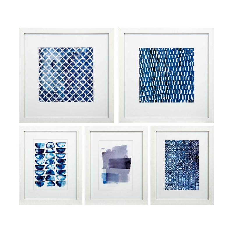 5-Piece Beautiful Decorative Wooden Wall Gallery Framed Indigo Blue Print Set – Contemporary – Picture Frames – by CTG Brands Inc.