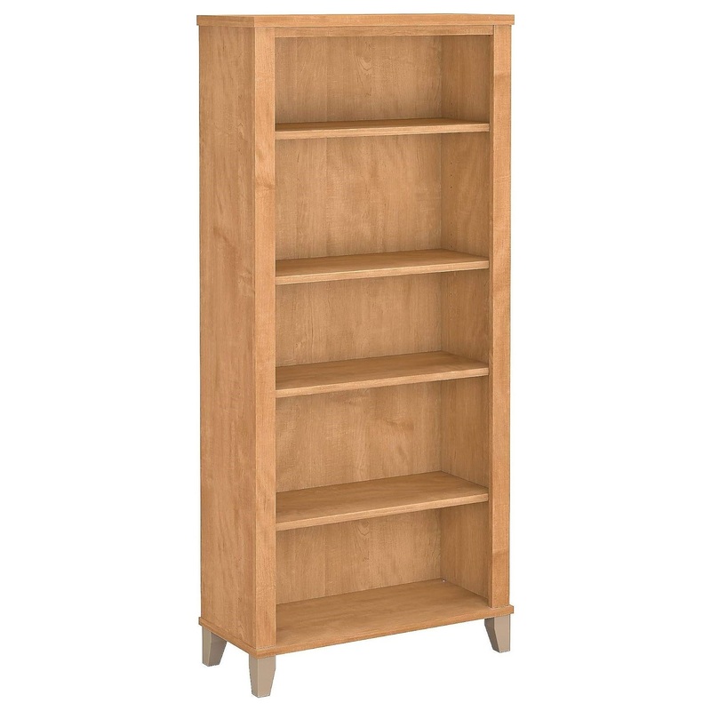 5-Shelf Bookcase, Maple Cross Display Cabinet for Library, Living Room, Office – Transitional – Bookcases – by Declusia
