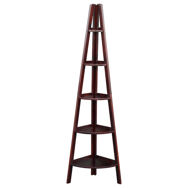 Attractive yet minimalistic, this corner ladder bookcase compliments any corner for extra storage space.Attractive in design, this espresso finished corner ladder bookcase is perfect for books, collectables, decorative items, and more. This corner bookcase will compliment any decor and can be combined with our 5 Tier Ladder Bookcase for additional storage space. The unique design lend to an open feel in any room or home office.