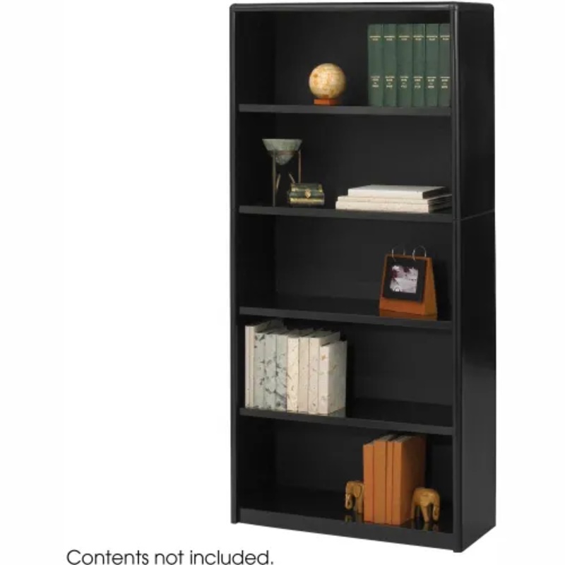 The 5 Shelf ValueMate Economy Bookcase is a Black workspace organizer with steel-constructed shelves and exterior. With a fiberboard backing, the bookshelf offers 12″ deep bookshelves that can adjust in 1″ increments during assembly. Plastic, snap-in radius corners provide speedy assembly. Fixed bottom and top shelves.