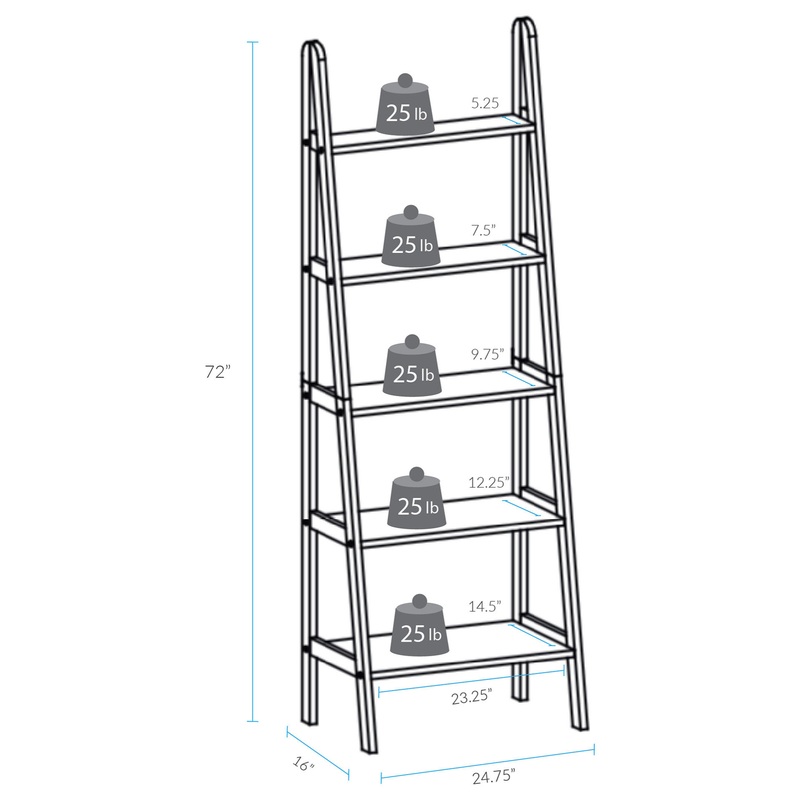 The 5-Shelf Ladder Bookcase gives you lots of display and storage in a clean, contemporary silhouette. The classic tiered ladder is composed of sturdy wood construction and is engineered for durability and strength. The 5-Shelf Ladder Bookcase comes in a v
