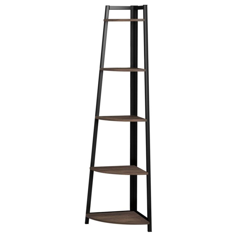 5 Tier Wooden Corner Bookcase with Metal Frame, Brown and BlackProvide a sophisticated abode to all your books and decor items with the inclusion of this industrial style Corner Bookcase which offers 5 tier shelving space. Constructed from the combination