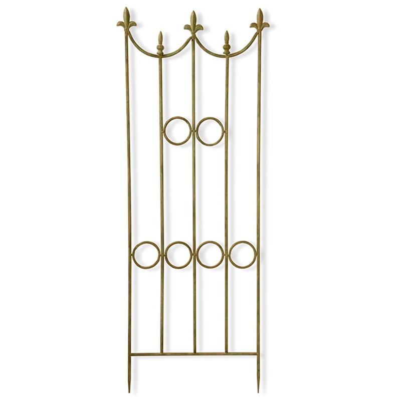 This panel is part of the Garden Accents line of home decorating ideas. Constructed of welded steel and painted olive green, this ornate decoration will add elegance to your landscaping scheme. Spiked feet allow for easy insertion into the ground.50" high