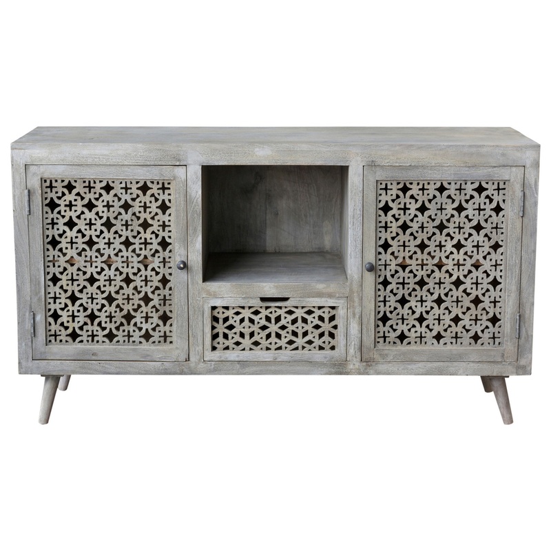 This 55-inch gray solid wood distressed console table with storage with storage can provide a variety of practical functions such as providing extra storage space, serving as a display area for decorative items or acting as a catch-all for keys, mail, and