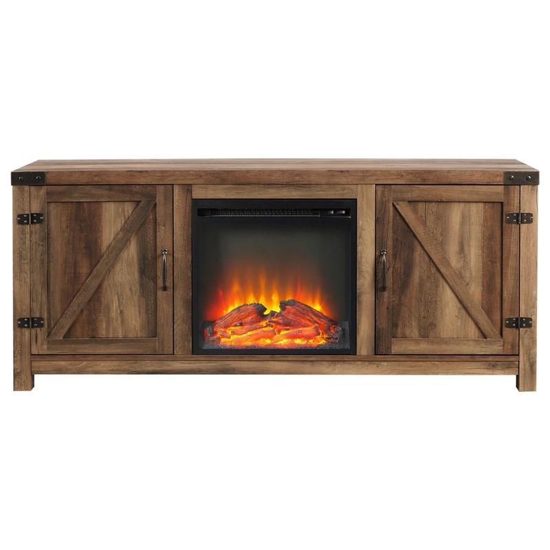 58″ Farmhouse Barn Door Fireplace TV Stand, Rustic Oak – Rustic – Entertainment Centers And Tv Stands – by Walker Edison