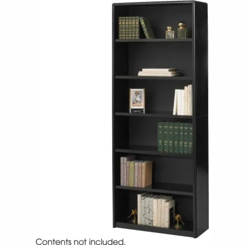 Economical, sturdy, and strong with the ValueMate Bookcases you can’t go wrong The shelf and exterior of the bookcase are constructed of steel and the back is made of solid fiberboard. Attractive, plastic snap-in radius corners make assembly easy and add to the overall strength of these units. Generous 12″ deep shelves accommodate 3-ring binders and large publications. Includes six shelves. Black finish.