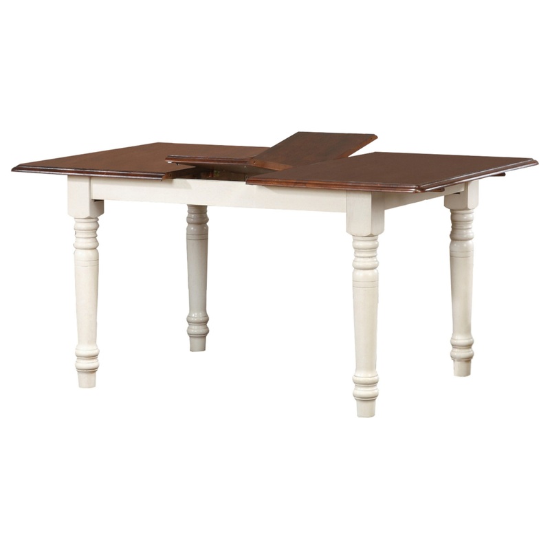 Sunset Trading Andrews 60" Rectangular Extendable Butterfly Leaf Dining Table | Antique White/Chestnut Brown Wood | Seats 4, 6Add traditional country cottage charm to your home without compromising space or style. Two colors are better than one, chestnut b