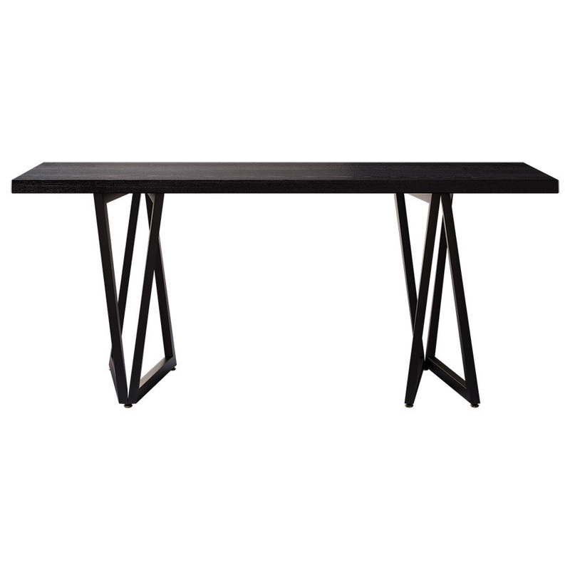 A work of art for your dining room. Host your family or your friends with this artful wooden dining table. The white or black table top supported by two square frame legs creates a ultramodern chic look. Solid wood and durable metal make the perfect composition to add an inviting and welcoming vibe. Available in 2 colors to match your existing home decor.