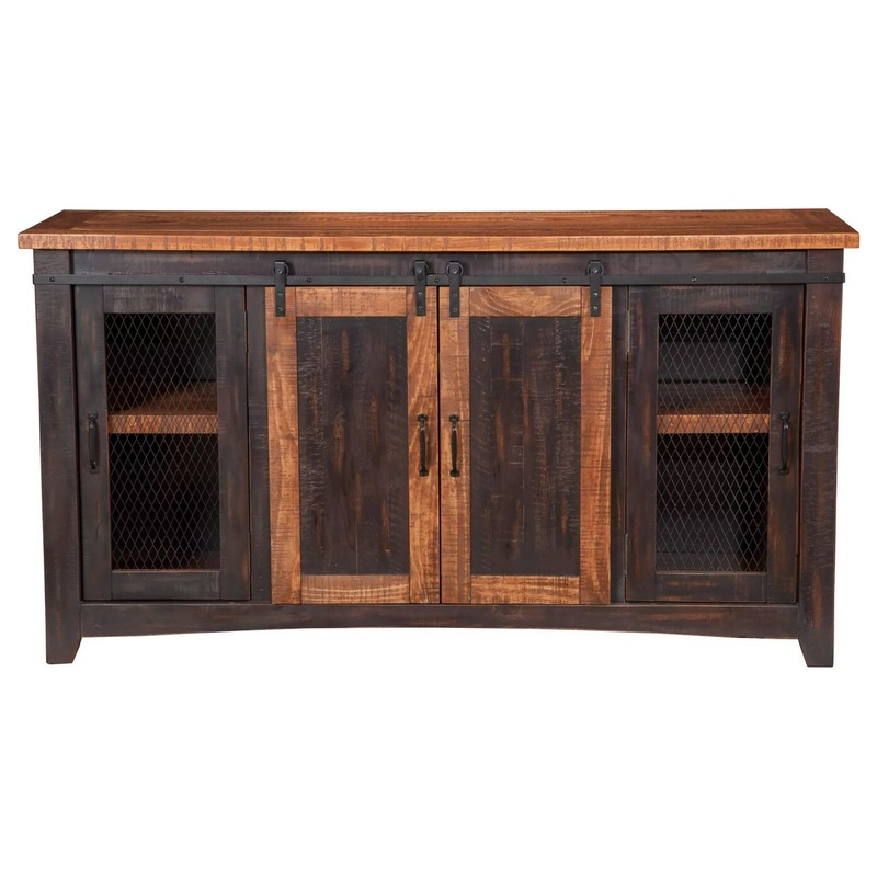 65″ Solid Wood Entertainment Center with Sliding and Metal Mesh Doors – Rustic – Entertainment Centers And Tv Stands – by Declusia-WMEF0323-570604246